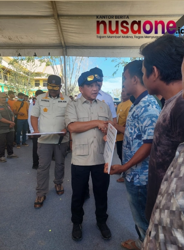 nusaone.id – Aceh Tamiang – Wakil Gubernur Aceh, Fadhlullah, mendampingi Menteri Dalam Negeri Tito Karnavian dalam penyerahan bantuan perbaikan rumah rusak akibat bencana hidrometeorologi Tahap I di Kabupaten Aceh Tamiang, Jumat (13/2/2026).