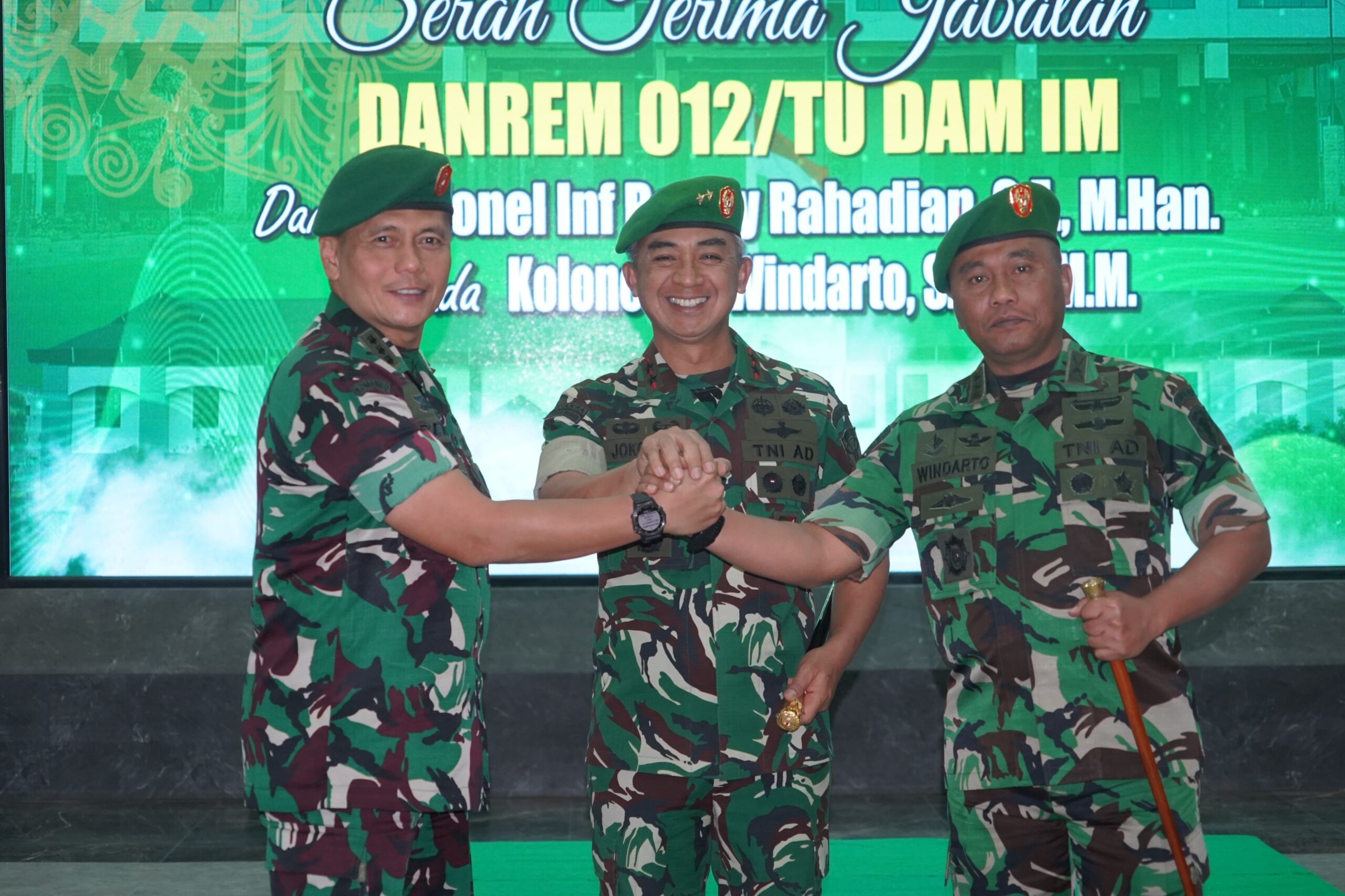 Pada kesempatan tersebut, Pangdam IM menyampaikan ucapan selamat bertugas di tempat yang baru kepada Kolonel Inf Benny Rahadian, S.E., M.Han., yang kini menjabat sebagai Paban II/Minanevops Sopsad, Kolonel Inf Fransisco, S.E., M.I.Kom., sebagai Paban Sahli Kasad Bidang Siber, serta Letkol Kav Fajar Hapsari Nugroho, S.I.P., M.M., sebagai Dandim 0714/Salatiga Korem 073 Kodam IV/Diponegoro.