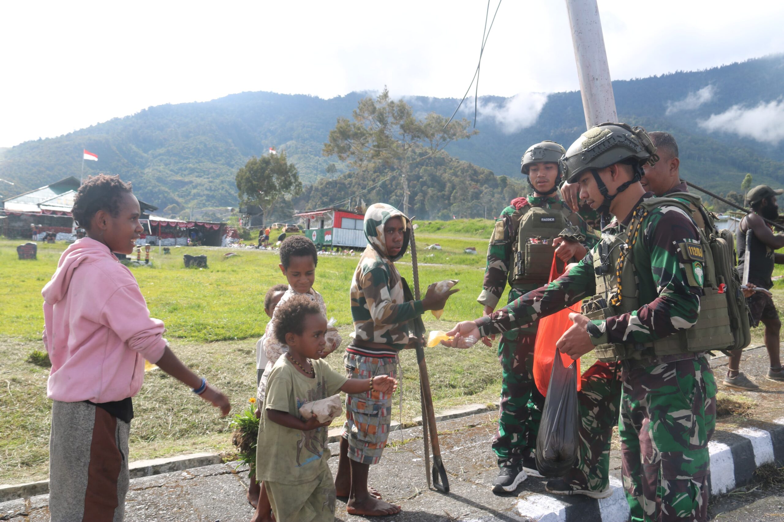 nusaone.id Puncak Jaya – Prajurit Pos Kota Baru Satgas Yonif 112/Dharma Jaya terus mempererat kedekatan dengan masyarakat melalui kegiatan Jumat Berkah. Pada Jumat (19/9/2025), personel membagikan makanan bergizi gratis kepada warga di Kampung Pagaleme, Distrik Mulia, Kabupaten Puncak Jaya, Papua Tengah.