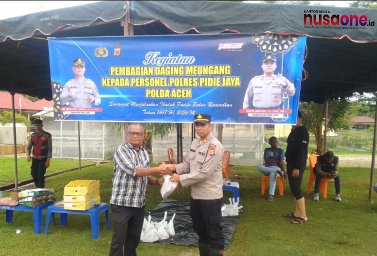 Pidie Jaya – Dalam rangka menyambut bulan suci Ramadan 1447 Hijriah, Polres Pidie Jaya menggelar pembagian daging sapi meugang kepada personel dan sejumlah jurnalis, Senin (16/2/2026).