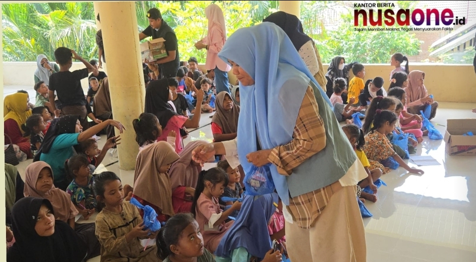 PIDIE JAYA —nusaone.id Kepala Taman Bacaan Masyarakat (TBM) Rumah Baca Tiara, Mursyidah, S.Pd., M.Pd., melaksanakan kegiatan Trauma Healing berbasis literasi untuk anak-anak korban bencana banjir di Camp Pengungsian Desa Groung-Groung Capah, Kecamatan Ulim, Kabupaten Pidie Jaya, Kamis (15/12/2025).