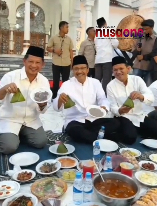 Setelah itu, para tamu undangan bersama masyarakat mengikuti buka puasa bersama yang digelar di halaman masjid dengan suasana penuh kebersamaan.