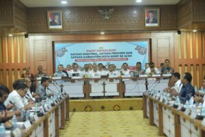 nusaone.id. BANDA ACEH – Wakil Gubernur Aceh, H. Fadhlullah, SE., memimpin rapat koordinasi Satuan Tugas Nasional, Provinsi, dan Kabupaten/Kota Koperasi Desa Merah Putih (KDMP) se-Aceh di Gedung Serbaguna Setda Aceh, Kamis (18/9/2025). Pertemuan ini menegaskan komitmen menjadikan KDMP sebagai ujung tombak pemerataan ekonomi dan penguatan ketahanan pangan.