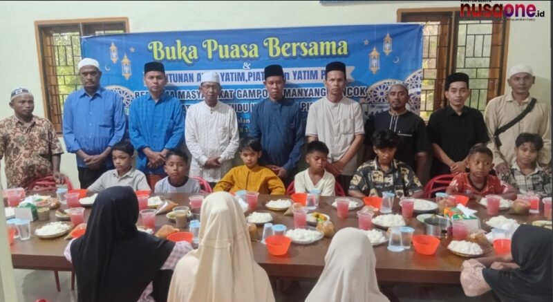 nusaone.id – Pidie Jaya – Masyarakat Gampong Manyang Lancok, Kecamatan Meureudu, Kabupaten Pidie Jaya menggelar kegiatan buka puasa bersama (bukber) yang dirangkai dengan santunan kepada anak yatim-piatu, Minggu (15/3/2026).