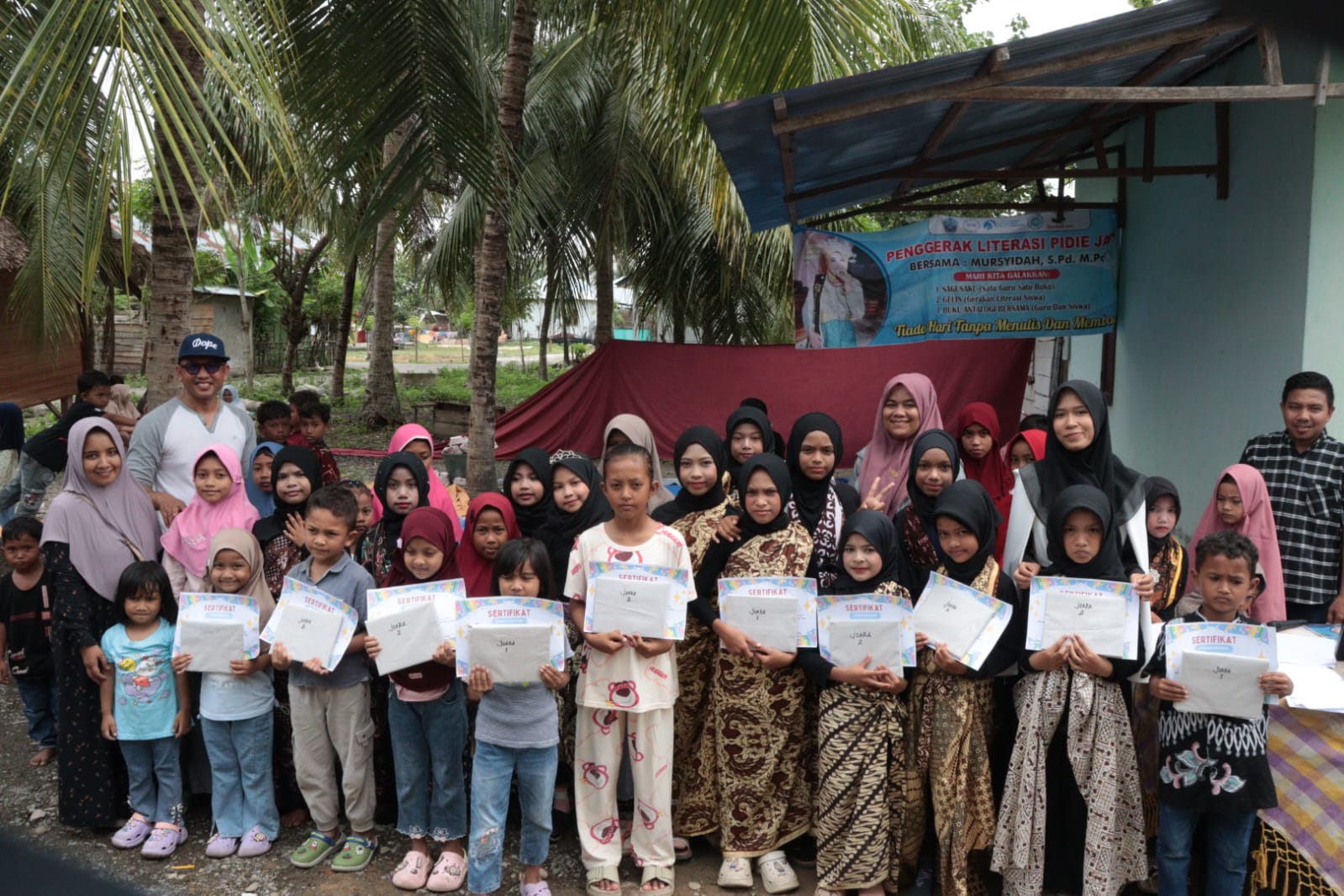 nusaone.id Pidie Jaya – Puluhan anak mengikuti lomba mewarnai yang digelar Taman Bacaan Masyarakat (TBM) Rumah Baca pada Minggu (14/9/2025). Acara ini diikuti 65 peserta dari berbagai tingkatan pendidikan, mulai PAUD, TK, SD hingga SMP.